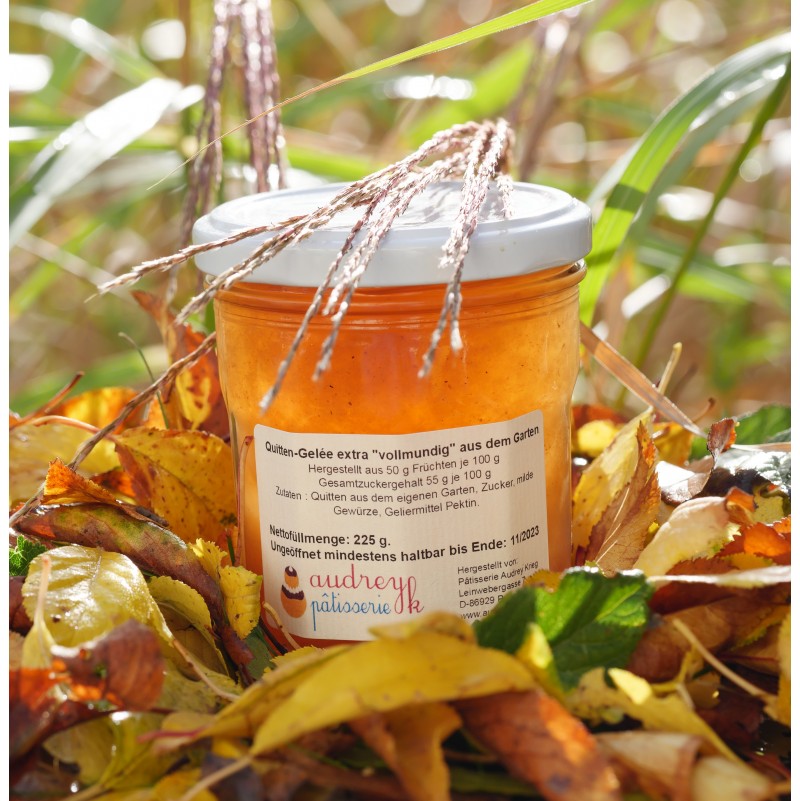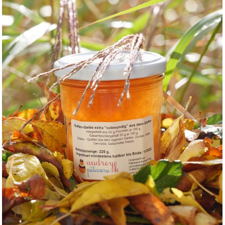 Dieser Gelée ist aus den Früchten unseres ganz jungen Quittenbaumes (direkt neben den Kundenparkplätzen) hergestellt worden!
