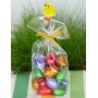 Vier Sorten, zwangig Luxus-Ostereier von dem französischen Schokoladenhersteller Valrhona in hausgemachter Verpackung.